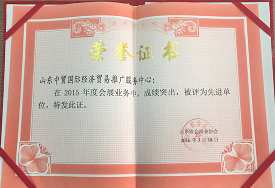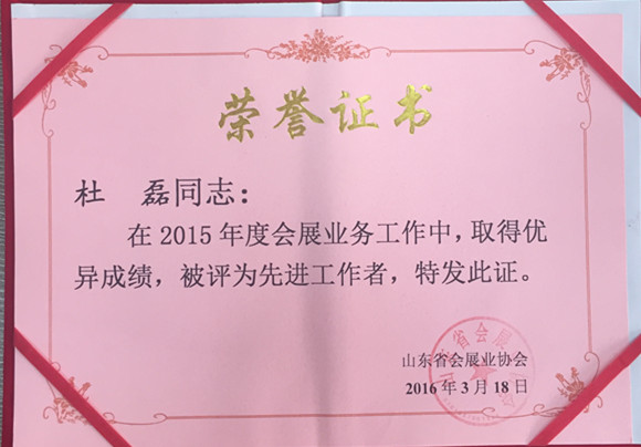 2015年度山東會(huì)展行業(yè)先進(jìn)單位。 記者 李曉夢/攝