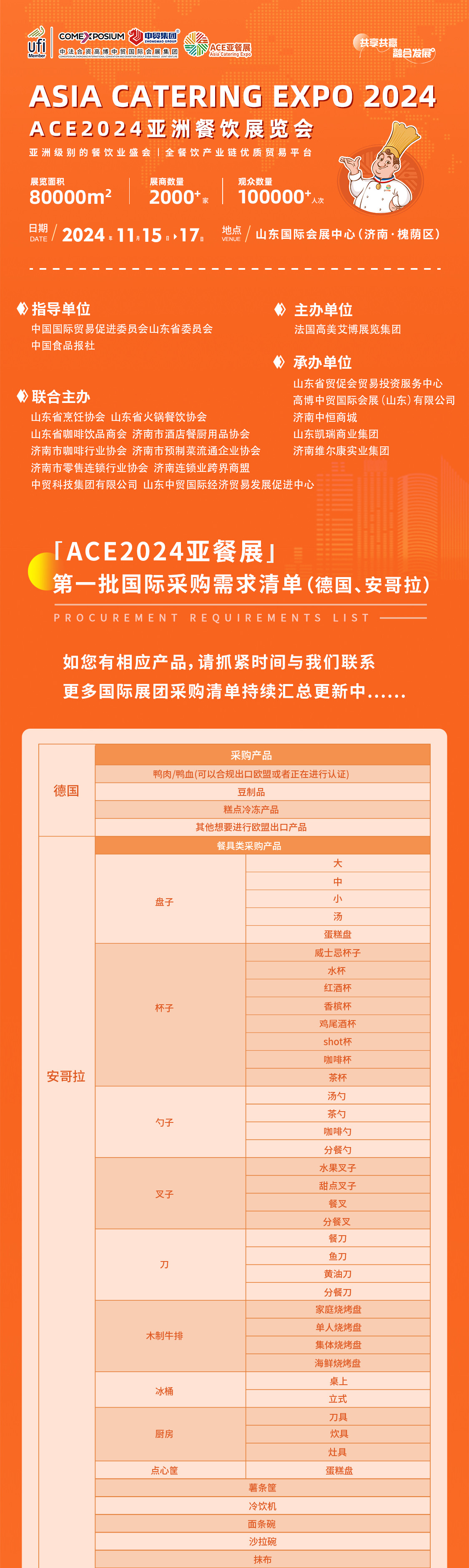 11月15日,ACE2024亞餐展即將盛大開幕,如您有品牌宣傳、展示以及市場拓展的計(jì)劃,或者有參觀選品的計(jì)劃,可在留言區(qū)留下您的需求信息,我們將第一時(shí)間聯(lián)系您。您也可致電:0531-82350000 0551-67102222咨詢參展、參觀哦。