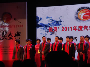 2012年2月13日,由慧聰網(wǎng)主辦,由中國(guó)汽車(chē)工業(yè)協(xié)會(huì)、中國(guó)汽車(chē)工程學(xué)會(huì)、中國(guó)汽車(chē)流通協(xié)會(huì)、中國(guó)國(guó)家標(biāo)準(zhǔn)制定委員會(huì)、中國(guó)汽車(chē)工業(yè)咨詢委員會(huì)、全國(guó)汽車(chē)服務(wù)高科技產(chǎn)業(yè)化委員會(huì)、廣州市汽車(chē)配件用品行業(yè)協(xié)會(huì)、河南省汽車(chē)用品業(yè)商會(huì)、哈爾濱汽車(chē)用品服務(wù)業(yè)商會(huì)、安徽省汽車(chē)用品行業(yè)商會(huì)、湖南省汽車(chē)用品行業(yè)商會(huì)、上海市工商聯(lián)汽車(chē)配件及用品業(yè)商會(huì)、北京汽車(chē)用品商會(huì)、中國(guó)電子商會(huì)汽車(chē)電子專業(yè)委員會(huì)協(xié)辦的汽車(chē)用品“奧斯卡”--2011年度(第八屆)中國(guó)汽車(chē)用品行業(yè)十大評(píng)選頒獎(jiǎng)盛典在北京釣魚(yú)臺(tái)國(guó)賓館盛大舉辦。