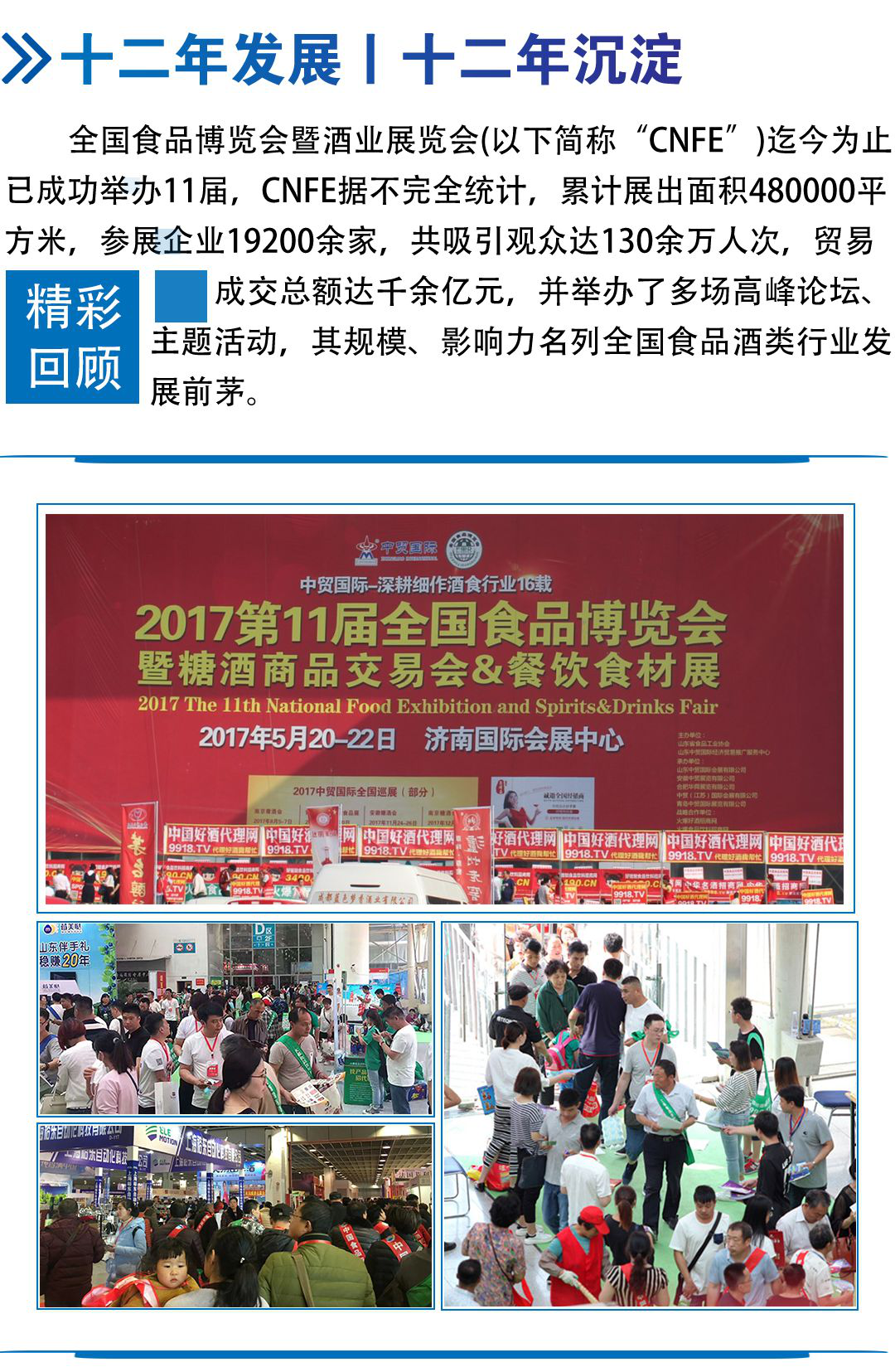 中貿集團2018年將在山東濟南、安徽合肥、江蘇南京、黑龍江哈爾濱、浙江杭州等省市舉辦十余場次食品展、酒博會、餐飲展,形成聯動招商、資源互動和共享。